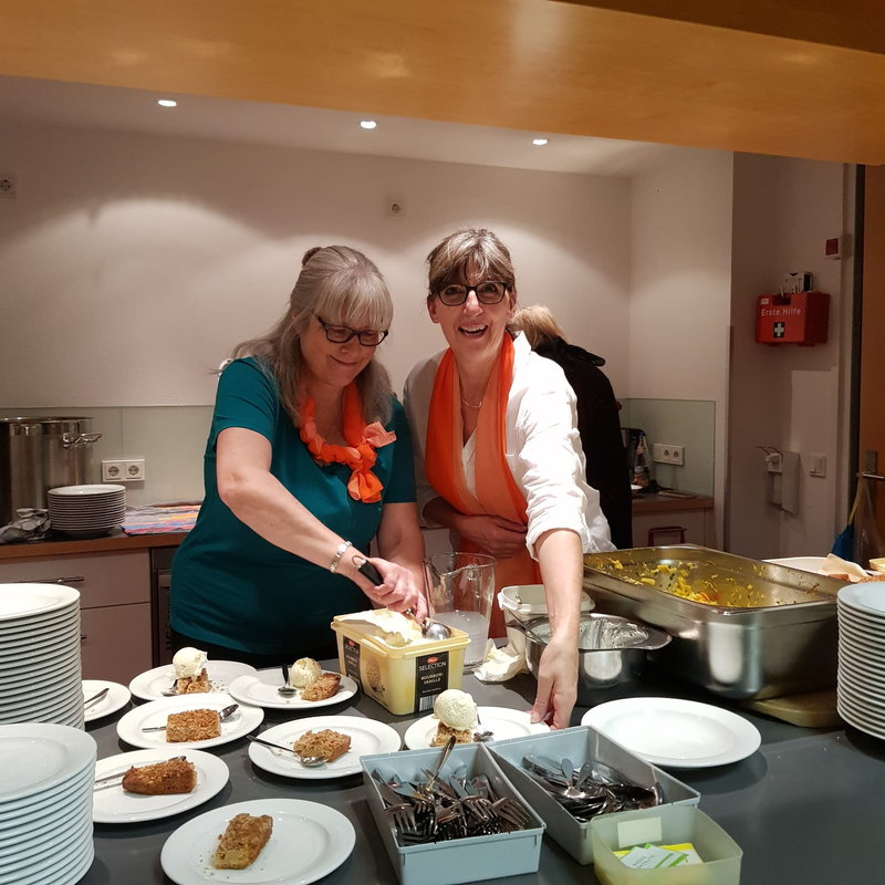 So galt der Dank am Ende des Tages den Haupt-Verantwortlichen des Abends, Chorleiterin Eva Brunner, den beiden Vorständen Sybille Kennerknecht und Peter Berg und dem Hausherrn Pfarrer Martin Weinreich, und natürlich den vielen fleißigen Helfern aus dem Chor und den Familien, die mit dem Herrichten des Saals, dem Schleppen von Getränkekisten, der Essensausgabe, mit dem Verkauf und am Ende auch mit dem Aufräumen betraut waren. Alle zusammen ermöglichten es, dass dieser Abend zu einer rundum fröhlichen, gelungenen Veranstaltung wurde.
