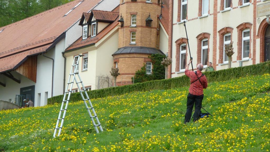 leicht wackligen Leiter aus uns ablichtete. Damit nicht genug, ließ er dann