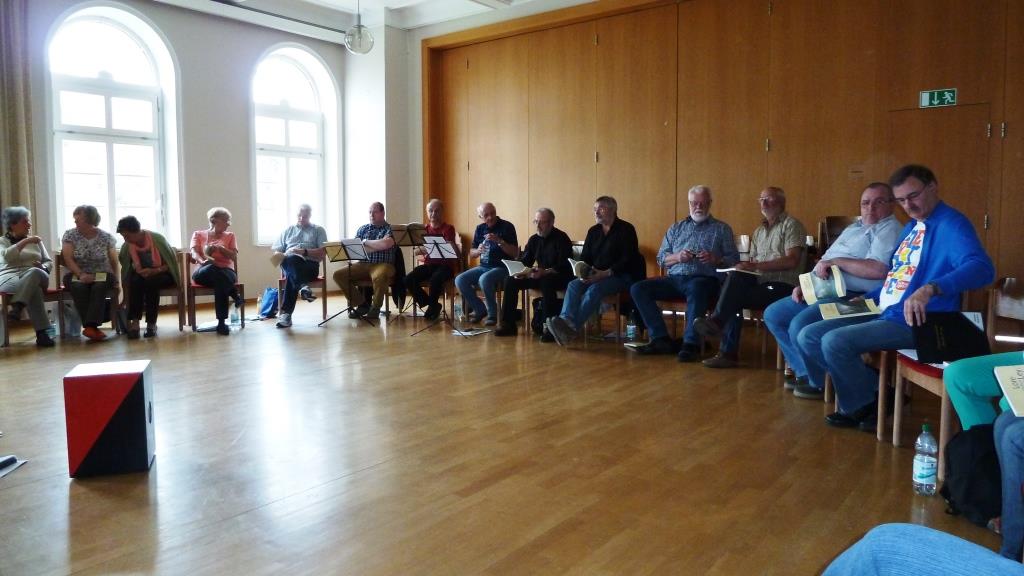 waren die Stühle aufgestellt, so dass wir uns gegenseitig beim Singen