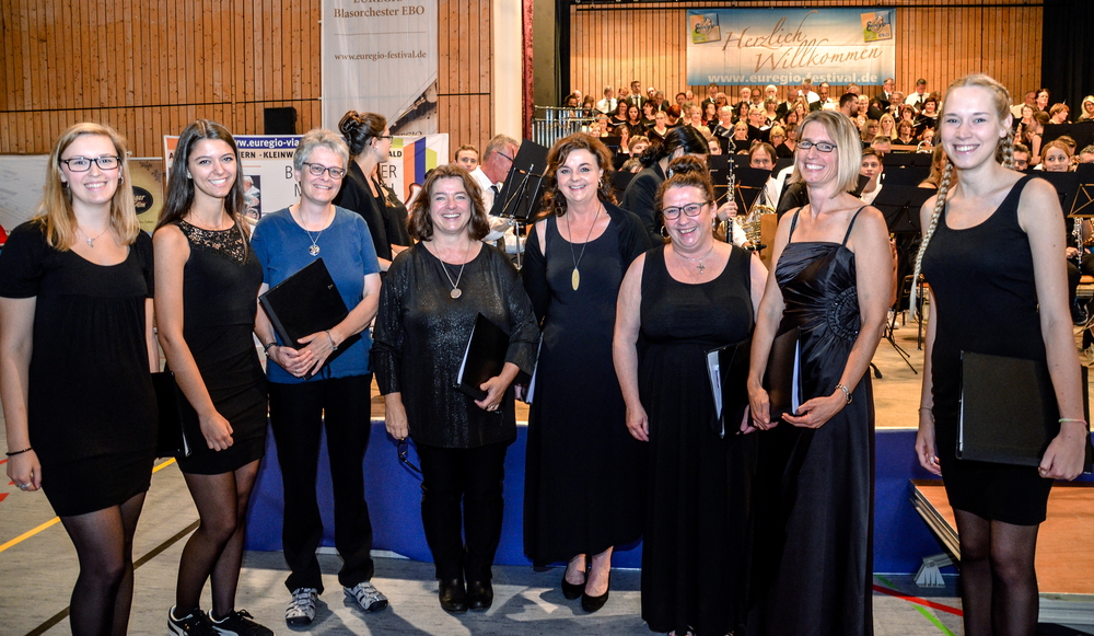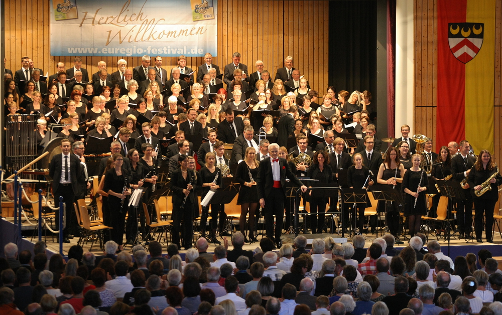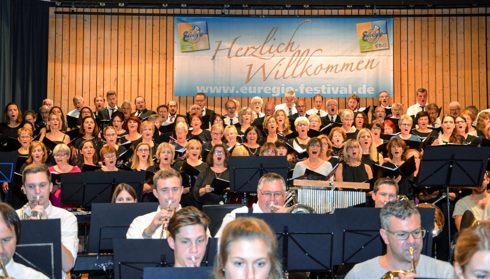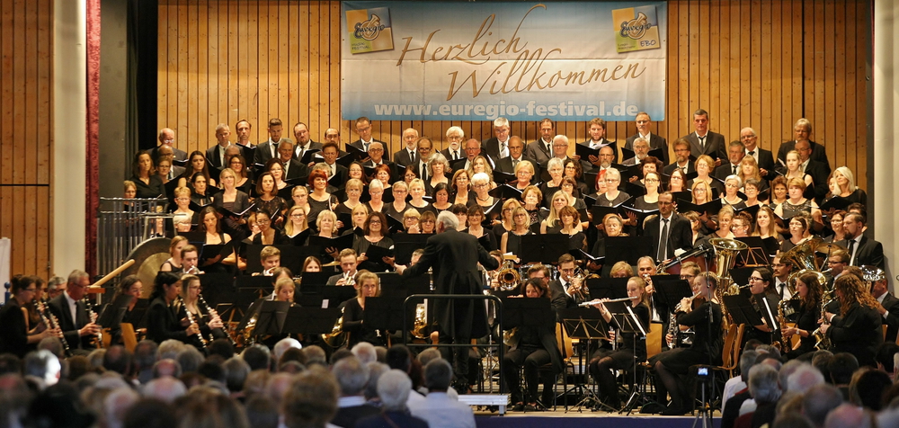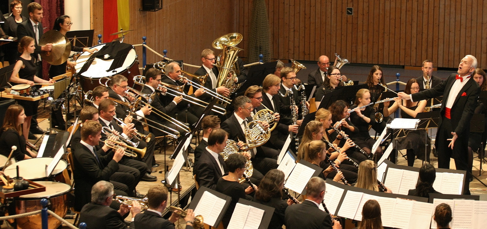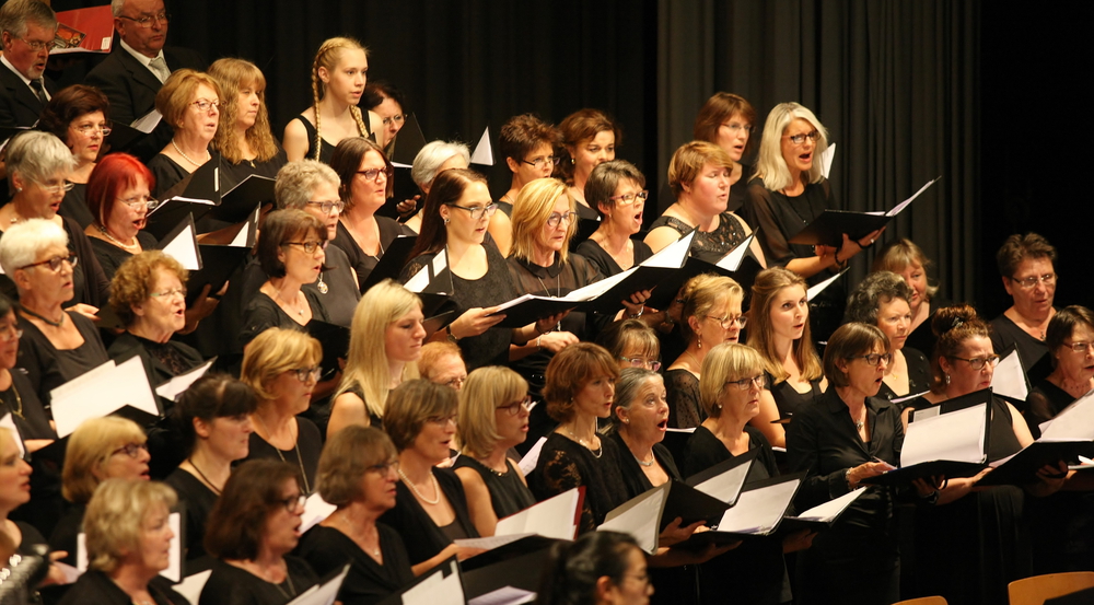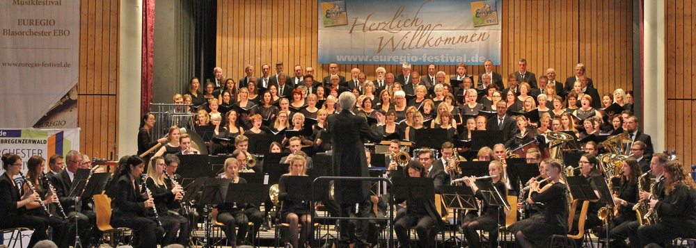 Am 6. Oktober hatten wir die erste Probe mit dem Orchester und seinem Dirigenten Johann Mösenbichler, und waren erst einmal von der Klasse der Musiker beeindruckt, bekamen aber durch die Musik sofort einen tollen Rückhalt bei unserem Gesang. In der Woche des Konzerts reihte sich dann Probe an Probe, und mit der mehr und mehr gewonnenen Sicherheit wuchs bei uns die Vorfreude auf dieses Konzert. Auch wenn die Hauptprobe für uns nicht so hundertprozentig lief, das Konzert selbst am Sonntag war für alle Beteiligten ein großer Erfolg. Maßgeblichen Anteil daran hatte mit Sicherheit der absolute Souveränität ausstrahlende Dirigent Johann Mösenbichler, der das EBO-Blasorchester und unsere vier Chöre mit ganz viel Herz und Präzision leitete. Natürlich hatten unsere beiden Chorleiter Eva Brunner (Chorgemeinschaft und "Zabander") und David Wiesner (Cantoni-Chor und Dietmannsried) einen nicht minderen Anteil an diesem Erfolg, waren sie es doch, die uns die sieben Werke mit viel Engagement nahebrachten. Im ersten Teil des Konzerts waren dies das "Va pensiero", der "Coro alla bocca chiusa" und "After the storm", im zweiten Teil sangen wir "Moment for Morricone", die "Bohemian Rhapsody", ein Medley aus der "West Side Story", und als Zugabe das "Adiemus". Lang anhaltender Beifall der 1200 (!) Konzertbesucher war der wohl verdiente Lohn für unsere Anstrengungen. Jede/r von uns Sängerinnen und Sängern war hoch motiviert und gab ihr/sein Bestes, und so konnte man mit einem guten Gefühl auf der Bühne den Applaus genießen.