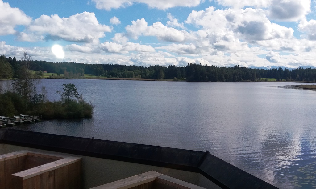 Gegen 10 Uhr traf sich ein kleines Grüppchen von 18 Sängerinnen und Sängern nebst Anhang auf dem Aldi-Parkplatz, um gemeinsam zum Elbsee bei Aitrang zu fahren. Das Wetter war nicht vielversprechend, dennoch waren wir alle frohen Mutes, waren wir doch mit Regenjacken und -schirmen auf jegliche Wetterkapriolen eingestellt. Von diesen blieben wir aber auf dem 6,5 km langen Weg weitestgehend verschont, und so erreichten wir nach eineinhalb Stunden Fußmarsch (zwei mussten leider wegen Fußproblemen vorzeitig umkehren) auf schönen Wegen wieder unseren Ausgangspunkt, das Elbsee-Restaurant. Ingeborg hatte bereits eine lange Tafel für uns reserviert, und so ließen wir es uns bei gutem Essen und Trinken gut gehen. Erwähnenswert ist dabei die außergewöhnlich flotte Bedienungsmannschaft; das Essen war sehr schnell und bei allen nahezu gleichzeitig da: Klasse!