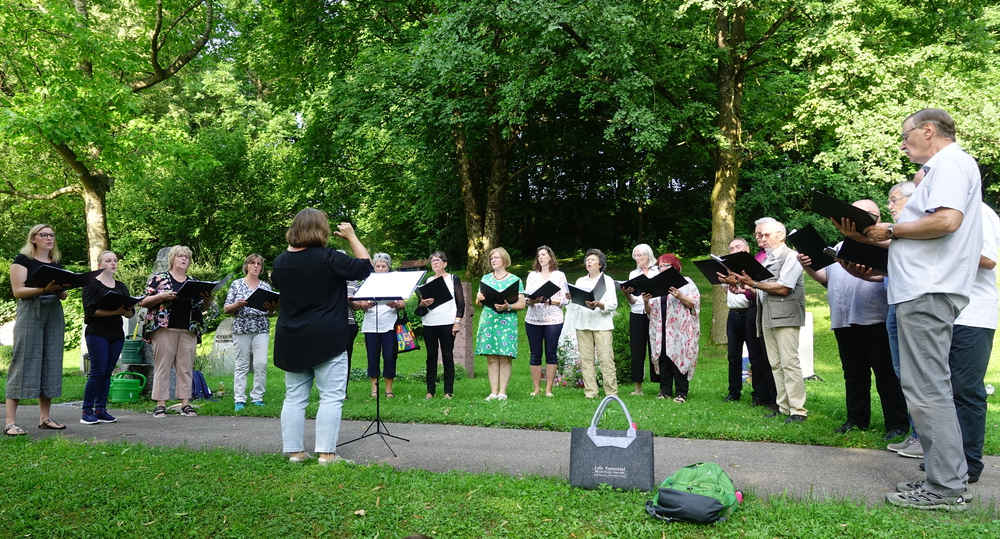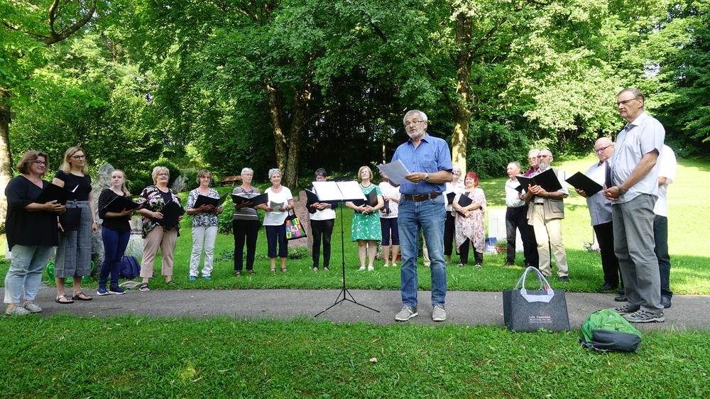 Unter der Leitung von Leo und Eva sangen wir vier Lieder, die Erich selbst auch gerne gesungen hat bzw. die eben zu dem Anlass passten. Eine große Zuhörerschar hatte sich an Erichs Grab eingefunden, um damit auch die lange Verbundenheit mit dem Verstorbenen und auch mit der Chorgemeinschaft zu zeigen. Mit einem gelungenen Gedicht konnte Leo die Zuhörer überraschen und würdigte auf diese Weise Erichs Verdienste um die Chorgemeinschaft. Erichs Tochter Gerlinde bedankte sich sehr herzlich für die wirklich gelungene, berührende kleine Feier und überreichte der Chorgemeinschaft eine Spende, was sicher ganz im Sinne Erichs war.