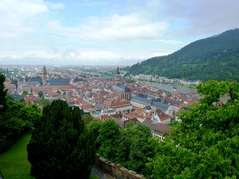 Die Zeit bis zur offiziellen Stadtführung um 16:00 Uhr konnte dann jeder nach seinem eigenen Gusto verbringen. Während die einen auf dem Philosophenweg bei hochgeistigen Gesprächen die überzähligen Kalorien des Vorabends rausschwitzten, zogen die anderen die gemütlichere Gangart in der Fußgängerzone mit Zwischenstopp im Restaurant vor. Pünktlich zu Beginn der Stadtführung begann es dann auch zu regnen bzw. richtig zu schütten, und so mussten die beiden Stadtführer etwas improvisieren. In der imposanten Heilig-Geist-Kirche trafen sich die beiden Gruppen wieder, um die herrliche Akustik der Kirche mit "Canatate Domino" und " I've got peace like a river" zu testen. Auch hier zückten die Touries, vor allem die aus Fernost, ihre Smartphones, um unseren Gesang auf Video festzuhalten. Es würde nicht verwundern, könnte man unseren Auftritt demnächst auf Youtube bestaunen. Vieles erfuhren wir von der Stadt Heidelberg, natürlich von ihrer Geschichte als Deutschlands erster Universität, von den unglaublichen Hochwassern des Neckar und von der überaus wechselvollen Herrschaftsgeschichte.