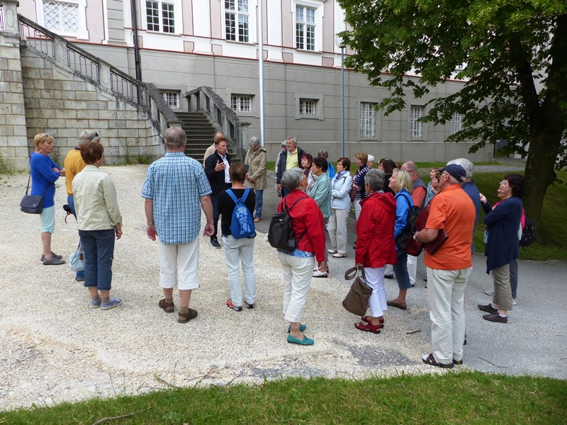 Die letzte Station auf unserer Reise war das Kloster Neresheim am Rande des Rieses im Härtsfeld. Unser Tenor Ulrich Rupp, der aus der Gegend stammt, konnte uns viel über das Kloster und speziell zur Klosterkirche erzählen. Als wir dann in der Kirche standen, waren wir alle von der Klarheit und Erhabenheit dieses Bauwerks aus dem Spätbarock sehr angetan. Natürlich sangen wir auch hier ein paar Lieder und und genossen jeweils am Ende den unglaublich langen Nachhall. In der Klosterwirtschaft gab es dann das bereits vorbestellte Abendessen, bevor wir gegen 19:00 Uhr wieder aufbrachen.