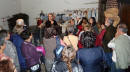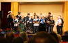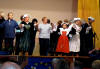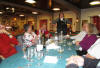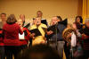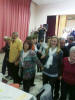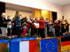 Am Abend trafen wir uns im Kulturzentrum zu einem "Diner-Konzert". Der Saal war rappelvoll mit gedeckten Tischen, die Bühne verhieß durch ihre schlechte Akustik nichts Gutes, und so waren schon sehr gespannt, was uns da wohl erwarten würde. Als wir nach zwei einheimischen Chören an der Reihe waren, konnten wir von Anfang das - trotz Bewirtung gut zuhörende - Publikum mit unseren Liedern begeistern. Wir hatten ja eine sehr bunte Mischung dabei, die von der Klassik ("Forelle") über deutsche Volkslieder bis nach Afrika reichte, und wir boten damit einen willkommenen Kontrapunkt zu den eher traditionellen Liedern der einheimischen Chöre. Unsere Chorleiterin Eva strahlte uns - obwohl sie gesundheitlich leicht angeschlagen war - richtiggehend an, und wir gaben das mit konzentriertem, engagiertem Singen zurück. Als dann eine bretonische Tanzgruppe aufspielte, hielt es viele von uns nicht mehr auf den Stühlen, und wir gesellten uns zu den einheimischen Tänzern. Es war eine helle Freude, mit den Bretonen Hand in Hand deren Tänze mitzumachen, und so wurde der lustige Abend noch ziemlich lang, und von Müdigkeit war zunächst noch keine Spur zu sehen. Wieder zuhause bei den Familien, als dann das Adrenalin so langsam nachließ, forderten die lange Fahrt und der kurze Schlaf dann aber doch noch ihren Tribut, und wir ergaben uns dem seligen Schlummer.