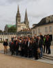 Am Montag hieß es für uns, früh aus den Federn zu kommen, denn um 8:00 Uhr war Abfahrt Richtung Heimat. Schwer mit Geschenken aus der Bretagne beladen, nach vielen Umarmungen und bisous machten wir uns auf die erste Etappe des Heimwegs. In der Stadt Chartres legten wir eine längere Pause ein, um die berühmte Kathedrale zu besichtigen. Leider sind dort gerade sehr lautstarke Bauarbeiten im Gange. Da wir aber unbedingt in der Kirche auch singen wollten, legten die Bauarbeiter doch tatsächlich für ein paar Minuten die Arbeit nieder, um uns und den anderen gerade anwesenden Besuchern den Genuss nicht zu zerstören. Unsere Lieder schwangen sich in die höchsten Höhen der beeindruckenden romanisch-gotischen Kathedrale hinauf, ein wahrer Moment des Innehaltens in dem sonst sehr lauten Baulärm. Gegen 19:00 Uhr erreichten wir unser Etappenziel, die "Auberge Champenoise" in Moussy. Hier bekamen wir eine Stunde später ein köstliches Abendessen, serviert von einer ziemlich schrägen Bedienung und einem leicht überforderten Kellner. So hatten wir auch an diesen Beiden zu schmunzeln (wenn auch die Art der jungen Dame, die Teller "hinzuknallen", verbunden mit einem Wink des Daumens, die Teller weiterzureichen, schon sehr an der Schmerzgrenze und eines französischen Kellners absolut unwürdig war), wie überhaupt während der ganzen Fahrt recht viel gelacht wurde.