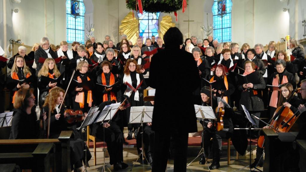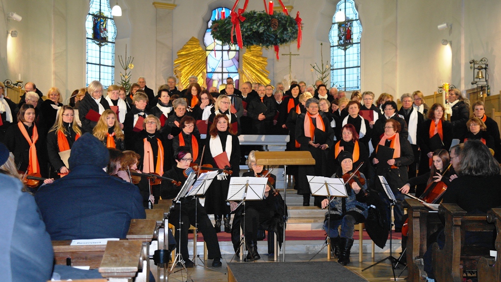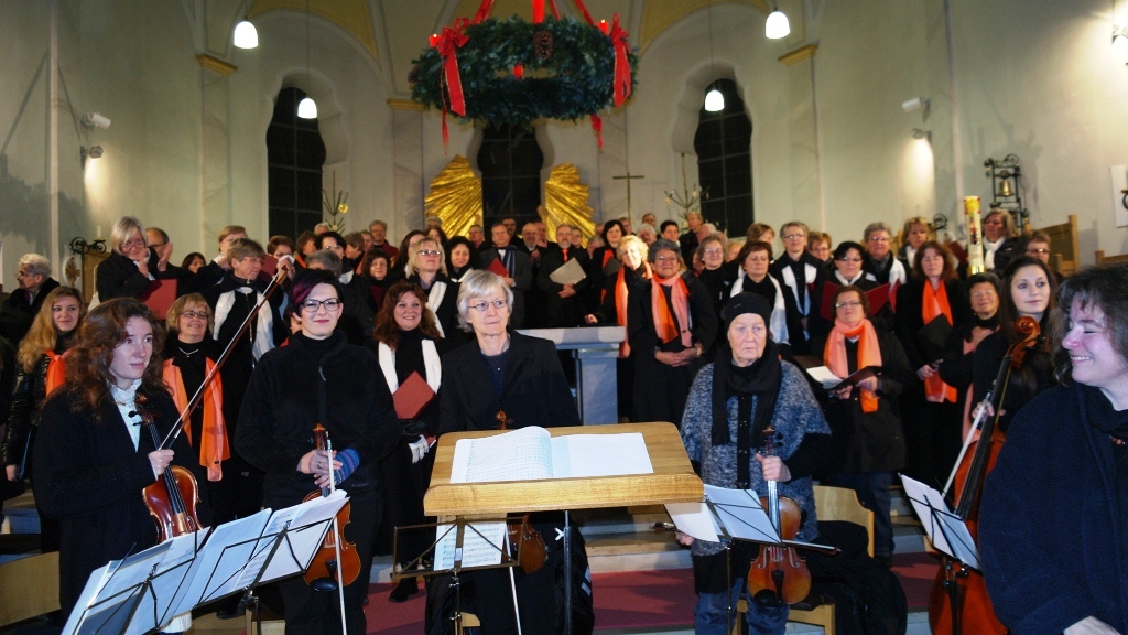 In der organisatorischen Vorbereitung des Konzerts arbeiteten die beiden Chorgemeinschaften sehr gut zusammen, um zumindest die äußeren Voraussetzungen für dieses große Vorhaben zu schaffen. Umfangreiche Probenarbeit in den Chören war natürlich auch seit September angesagt, wir wollten ja schließlich unser Bestes geben. Was wir nicht sicher einschätzen konnten, war die Frage, ob unsere treuen Zuhörer auch eine Stunde früher als bisher kommen würden und ob sie bereit wären, 10 Euro für den Eintritt zu bezahlen. Aber wir waren schlichtweg überwältigt, als wir feststellen konnten, dass die Kirche bis auf den letzten Platz gefüllt war. Hier schon ein ganz großes Dankeschön an die vielen Zuhörer.