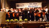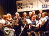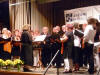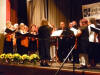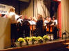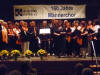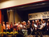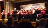 Nach der Pause wurde unser Programm zeitgenössisch, und wir besangen Dinge aus der Natur, z. B. den "Kuckuck" oder die "Forelle". Beide Lieder haben gemeinsam, dass der Komponist Anleihen aus klassischen Werken geschickt arrangiert hat, was bei den Zuhörern immer wieder zu einem gewissen "Aha, das kenn' ich doch - Effekt" führt. Bei den "Forellen"-Variationen nahmen wir dieses Mal noch den "Freifisch" (in Anlehnung an den "Freischütz") dazu. Bei den "Wolkenbildern" von Heinz Lemmermann ist nicht nur die Melodie sehr gelungen, vor allem der Text hier verdient es auch, bewusst aufgenommen zu werden. Den zweiten Block beendeten wir mit dem sehr schwungvollen "Wochenend' und Sonnenschein", bei dem uns Chorleiter Schmehr dankenswerterweise auf dem Klavier begleitete. Mit unserem Gesang müssen wir einen sehr guten Eindruck hinterlassen haben, denn es waren beim Schlussapplaus sogar vereinzelt "Zugabe"-Rufe zu hören. So ließen wir noch das fetzige "Yakanaka Vhangerie" vom Stapel, womit wir die Zuhörer vollends von unserem sprachlichen und gesanglichen Können überzeugen konnten.