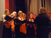 Die Chorgemeinschaft hatte zwei Blöcke mit je vier Liedern zu singen. Im ersten Block trugen wir Lieder aus der Renaissance vor, nachdem sie unser Vorstand Dolf vorher dem Publikum (trotz zweier anderer musikalischer Veranstaltungen in Kempten war der Saal gut gefüllt) anschaulich näher gebracht hatte. Wie auch schon zwei Wochen zuvor in Oberstdorf war die Akustik auf der Bühne für uns sehr ungewohnt, und so musste Eva schon beim Einsingen erst einige Umstellungen in den Reihen tätigen. Aber von solchen Dingen lässt sich die Chorgemeinschaft nicht groß beeindrucken, und so sangen wir unsere Lieder sehr sicher und mit großem Ausdruck. Nach dem "Tourdion" zum Aufwärmen zeigten wir beim "Landsknechtsständchen" neben unserem musikalischen auch unser sprachliches Können ebenso wie beim "Come again"; denn in der Zwischenzeit können uns französische, italienische oder englische Texte wie hier nicht mehr groß irritieren. Zum Abschluss des ersten Blocks sangen wir noch schwungvoll das (deutsche!) "Drei schöne Dinge fein".