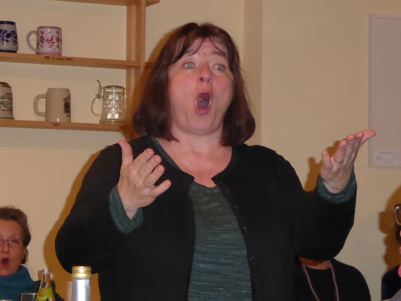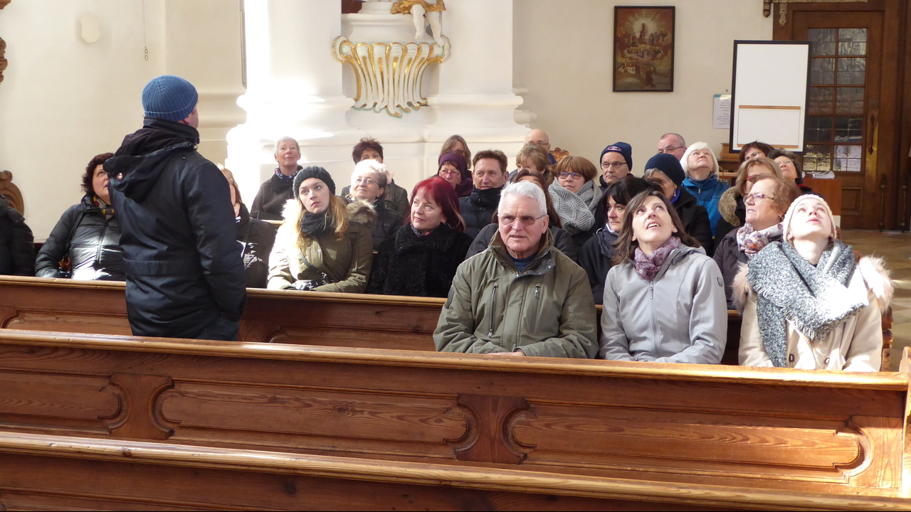 Am Samstag hatten wir eine Führung in der Wieskirche gebucht. Wir alle waren einhellig der Meinung, dass uns der Kirchenführer, seines Zeichens Mesner der Kirche, eine erstklassige Führung lieferte. Obwohl es eiskalt war in dem wunderbaren Rokoko-Bau, wir hingen gebannt an den Lippen des Mesners. Natürlich standen auch am Samstag drei Chorproben auf dem Programm, deshalb waren wir ja auch zusammengekommen. Am Abend teilte sich dann die Chorgemeinschaft in zwei Gruppen auf: Die einen übten sich mit Martina Kanschat im Line-Dance, während sich die anderen von Claudia mit einer Entspannungsübung auf die Nachtruhe vorbereiten ließen.