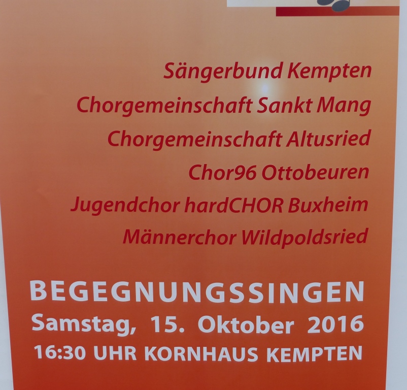 Am 15. Oktober nahm die Chorgemeinschaft an einem Begegnungssingen des Chorverbandes Bayerisch Schwaben (CBS) im Kornhaus in Kempten teil.