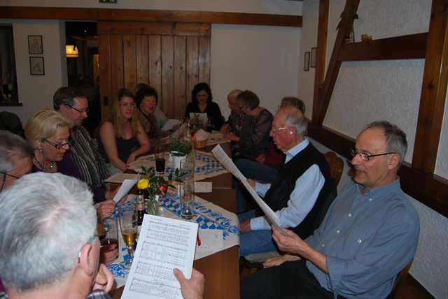 Das Bockbier rief, und - fast - alle kamen. Wenn auch das Häuflein die letzten Jahre weniger geworden ist - es waren ca. 25 Sängerinnen und Sänger da, dazu ein paar passive Mitglieder - so ist das Bockbierfest doch noch immer eine feste Konstante im Jahresprogramm der Chorgemeinschaft.