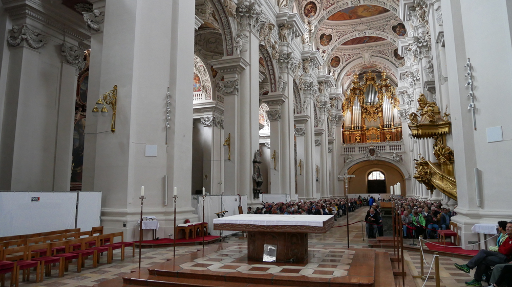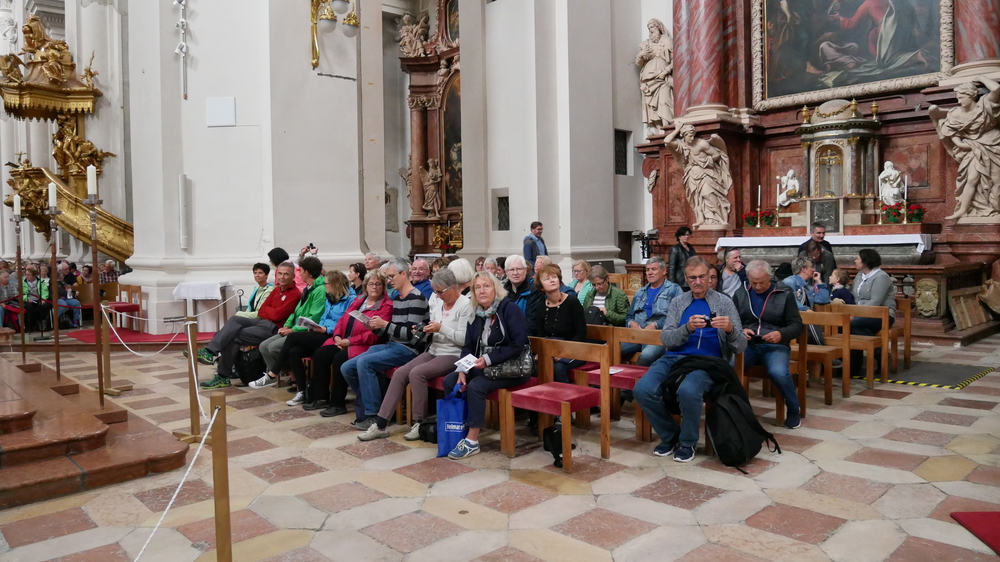 Nach einem reichhaltigen Frühstück ging es am Samstag um 10 Uhr in die Stadt zur Stadtführung. Zwei sehr nette, kundige Stadtführer zeigten uns in zwei Gruppen die Sehenswürdigkeiten dieser alten Stadt (schon die Römer waren hier), die sich vor allem rund um den Domberg herum fanden. Kaum zu glauben waren für uns die an mehreren Stellen der Stadt angebrachten Hochwassermarken. Vor allem das Hochwasser vom Sommer 2013, das teilweise bis in den 1. Stock der Gebäude reichte, war für uns Allgäuer kaum vorstellbar. Am Ende der Stadtführung bekamen wir dann einen kulturellen Leckerbissen geboten: Im Dom konnten wir zusammen mit vielen Hundert weiteren Touristen einem Orgelkonzert lauschen. In dieser herrlichen Barockkirche entfachten die über 17000 Orgelpfeifen ein wahres Feuerwerk, das wohl jeden auf seine Art beeindruckte.