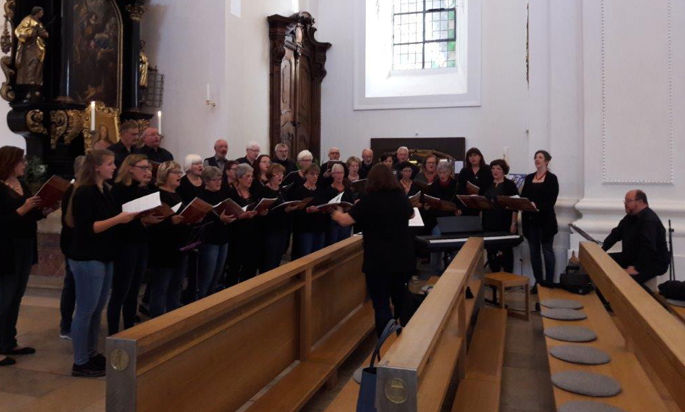 Nach einer etwa dreistündigen Freizeit, bei der jeder nach Lust und Laune machen konnte, wonach ihm der Sinn stand, trafen wir uns um halb fünf Uhr zum Einsingen. Ein gut gelaunter Organist begleitete uns souverän auf dem E-Piano, während wir stimmgewaltig unsere "Ethno-Mass" probten. Um 18 Uhr begann dann der Gottesdienst in der Kirche St. Paul, und wir stimmten mit großem Engagement die ersten Lieder an. Der Pfarrer begrüßte uns mit sehr herzlichen Worten ("engelsgleicher Gesang") und freute sich sichtlich über die Abwechslung in seiner Kirche. Man kann mit Fug und Recht behaupten, dass uns dieser Auftritt sehr gut gelang, denn auch die anwesenden Gottesdienstbesucher sparten am Ende nicht mit anhaltendem Beifall. Von dem Erfolg gut gelaunt und beschwingt ging es gleich nebenan in den "Bayerischen Löwen", wo wir wiederum deftige bayerische Kost genossen. Auch das eine oder andere Lied durfte nicht fehlen, und als wir dann gegen halb elf das Hotel erreichten, hatten wir einen ausgefüllten Tag hinter uns.