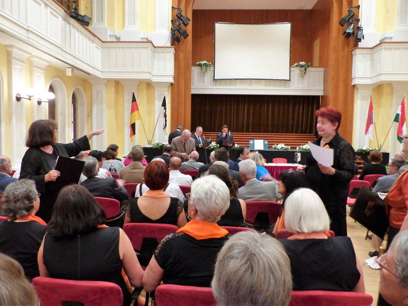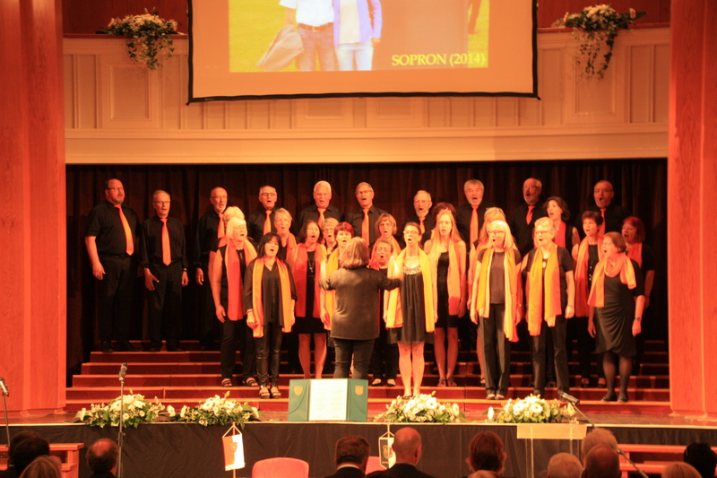 Am Freitag stand eine Stadtrundfahrt mit einer "Bimmelbahn" durch Sopron auf dem Programm, bei welcher wir einen sehr schönen Überblick über die doch weitläufige Stadt bekamen. Zum Mittagessen wurden wir ins Restaurant "Zanza" eingeladen, den Nachmittag hatten wir zur freien Verfügung. Die Spannung stieg dann bis zum Abend, als dann nach einer nochmaligen Hauptprobe um 19 Uhr das Konzert stattfand. Kurz vorher traf auch die Kemptener Delegation ein, gespickt mit Politprominenz in Gestalt des Oberbürgemeisters Kiechle, der Bürgermeisterin Sibylle Knott, des Ex-OBs Ulrich Netzer und etlichen Stadträten nebst ehemaligen Läufern, die damals 1988 in einem Stafettenlauf von Kempten nach Sopron gelaufen waren und damit die Partnerschaft begründet hatten. Vor dem "Gloria" von Vivaldi hatte jeder der beiden Chöre noch einen kurzen Extra-Auftritt, dei welchem wir das "Cantatae Domino", "Here's my prayer" und - als Frauen-Trio - das "Hebe deine Augen auf" sangen. Das Konzert selbst legten wir zusammen mit dem Pädagogenchor sehr gut hin und bekamen zu Recht lang anhaltenden Applaus. Den gelungenen Abend ließen wir bei einem tollen Buffet mit viel Gesang beim Pädagogenchor ausklingen.