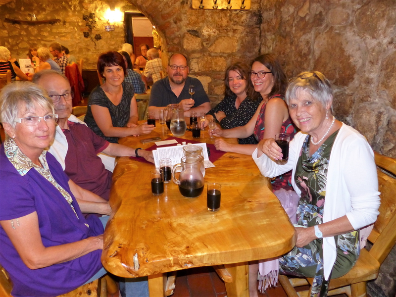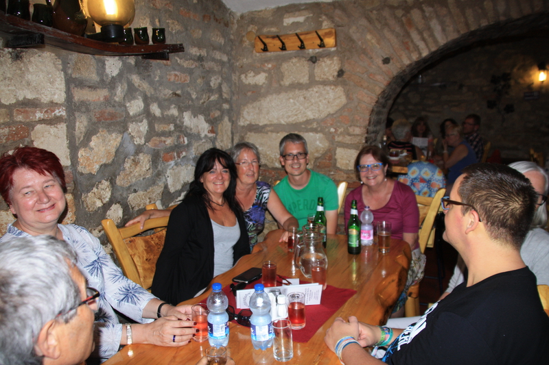 Am Samstag stand dann erstmal die offizielle Feier zum 30-jährigen Partnerschaftsjubiläum auf dem Programm. Völlig überraschend mussten wir vor dem Festakt erst noch die Deutschland-Hymne singen, die wir in einem Schnelldurchgang kurz einmal proben konnten. Nach einem sehr opulenten Buffet war Sightseeing angesagt: Zunächst ging es in Richtung Grenze, an die Stelle, die im August 1989 Schauplatz der ersten Öffnung des "Eisernen Vorhangs" war. Gerade für uns Deutsche ist dies ein besonderer Ort, markiert er doch die Stelle, wo die ersten Bürger der DDR durch den ungarischen Grenzzaun über Österreich nach Bayern kommen konnten. Anschließend besichtigten wir noch das Felsentheater, eine in einem ehemaligen Steinbruch eingerichtete Erlebnis- und Theaterwelt. Danach ging es im Sauseschritt wieder in die Stadt in eine Kunsthalle, wo wir bei der Eröffnung einer Kunstausstellung mit Bildern der Künstlerin Heidi Netzer aus Kempten (der Frau des Ex-OB) beiwohnen konnten. Den Abend verbrachten die einen in einem Weinkeller, die anderen zog es nach dem stressigen Tag lieber auf die Dachterrasse des Hotels, von wo man einen herrlichen Blick über die ganze Stadt genießen konnte.