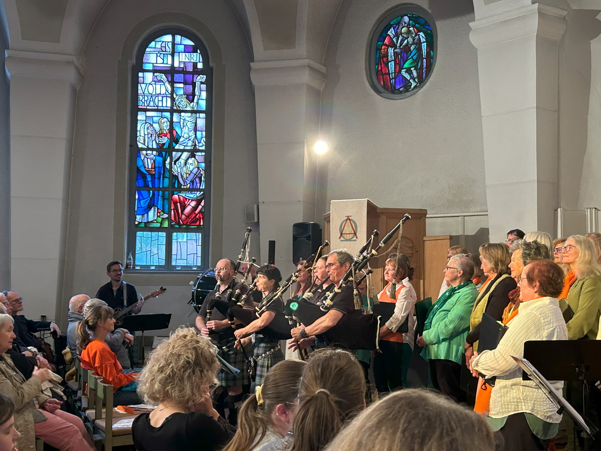 Am Ende des Berichts über den Irischen Abend 2024 stand zu lesen, dass diese Veranstaltung vielleicht eine Wiederholung finden könnte. So kam es auch, denn am 16. Mai 2025 veranstaltete die Chorgemeinschaft zum zweiten Mal einen Irischen Abend. Dazu luden wir wieder in die Christuskirche ein, und wie auch letztes Jahr fand unser Konzert vor vollem Hause statt.