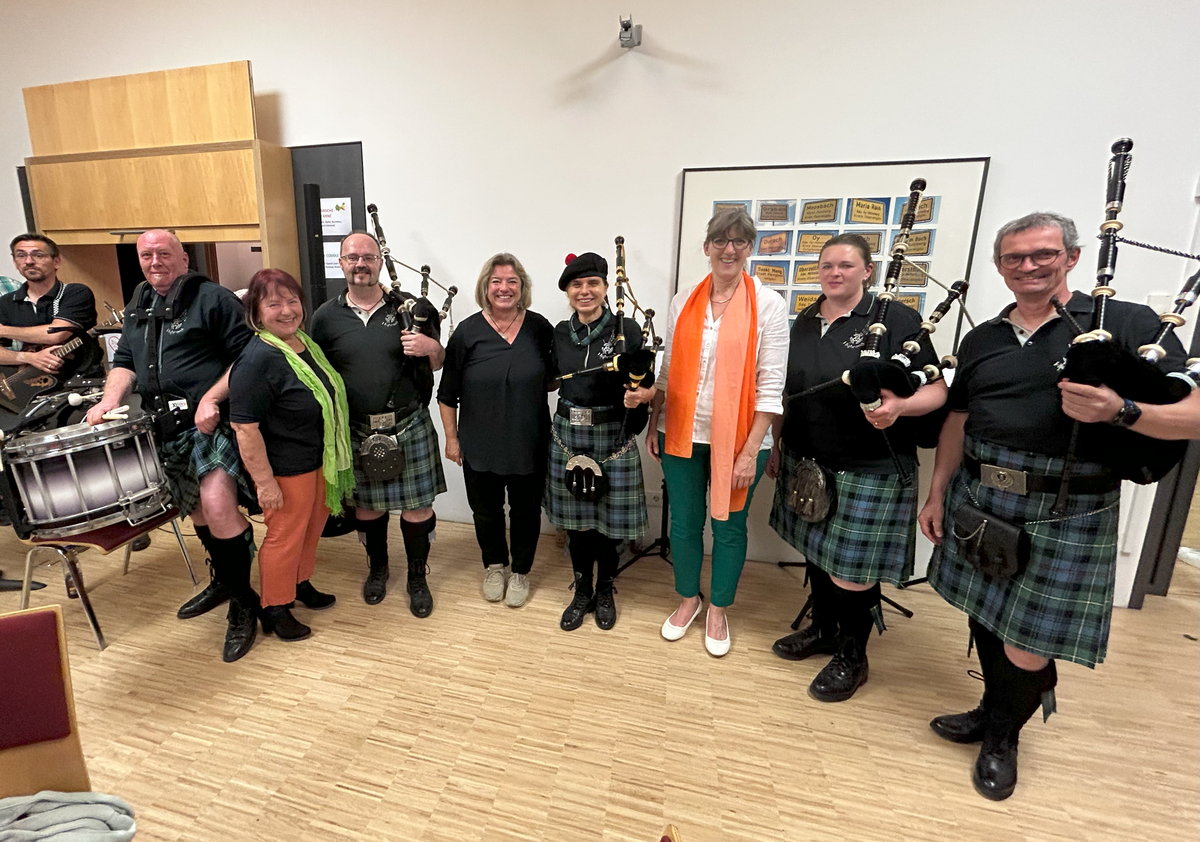 Als besonderes Highlight war diesmal eine Dudelsack-Gruppierung mit von der Partie, die "Highroad Pipes & Drums" aus Memmingen. Diese sechs Musiker (zwei Frauen, vier Männer) zogen dann zu Beginn sehr lautstark in die Kirche ein und schlugen das Publikum mit ihren schottisch-gälischen Stücken gleich in ihren Bann. Für manche Konzertbesucher war die Lautstärke vielleicht an der Grenze, aber wann kann man denn Dudelsackmusik so hautnah erleben? Mit Stücken wie dem bekannten "Mull of Kintyre" oder vor allem mit dem "Halleluja" von Leonard Cohen erzeugten die sechs Kilt-Träger immer wieder Gänsehaut bei den Zuhörerinnen und Zuhörern. Und natürlich gab es am Ende ihres Auftritts noch zwei Zugaben.