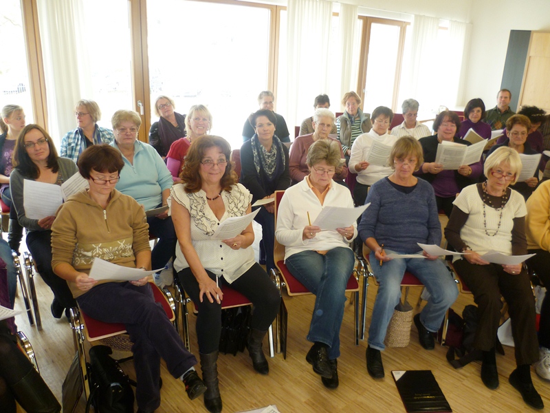 Sängerinnen und Sängern sehr gut gefüllt. Unsere beiden Chorleiterinnen Irene