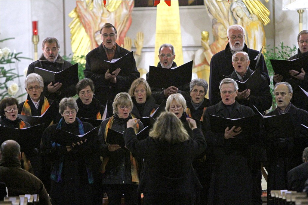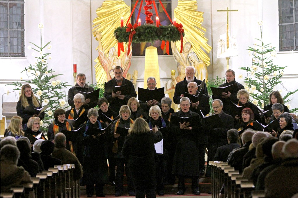 Zum dritten hatte sich Eva für den Chor auch einige besondere Stücke herausgesucht. Im ersten Block begannen wir mit dem mächtigen "Machet die Tore weit", darauf folgte "Wie schön leuchtet der Morgenstern" im Satz von J. S. Bach, und den Block der Alten Meister beendeten wir mit dem schwungvollen "En natus est Emanuel" von Michael Praetorius. Unseren zweiten Auftritt leitete das "Amazing grace" ein, bei dem unsere Silke wieder wunderbar gefühlvoll die Soli sang. Ebenso beeindruckend gelang der Chorgemeinschaft das folgende Spiritual "Hear my prayer". Im unserem dritten Auftritt wurde es dann hochweihnachtlich. Begleitet von Sigrid Müller an der Truhenorgel sangen wir mit viel Elan das "Transeamus usque Bethlehem", was von den Hirten, die zur Krippe eilen, erzählt. Dort angekommen, besangen wir mit viel Herz den "Stern von Bethlehem", ehe wir mit dem wunderbaren Satz der "Heiligen Nacht" das Konzert beendeten.