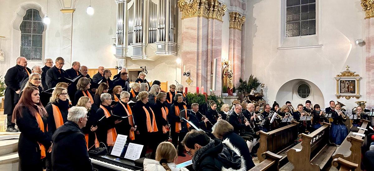 gut zusammengesetztes Ensemble des Musikvereins Sankt Mang das Konzert und