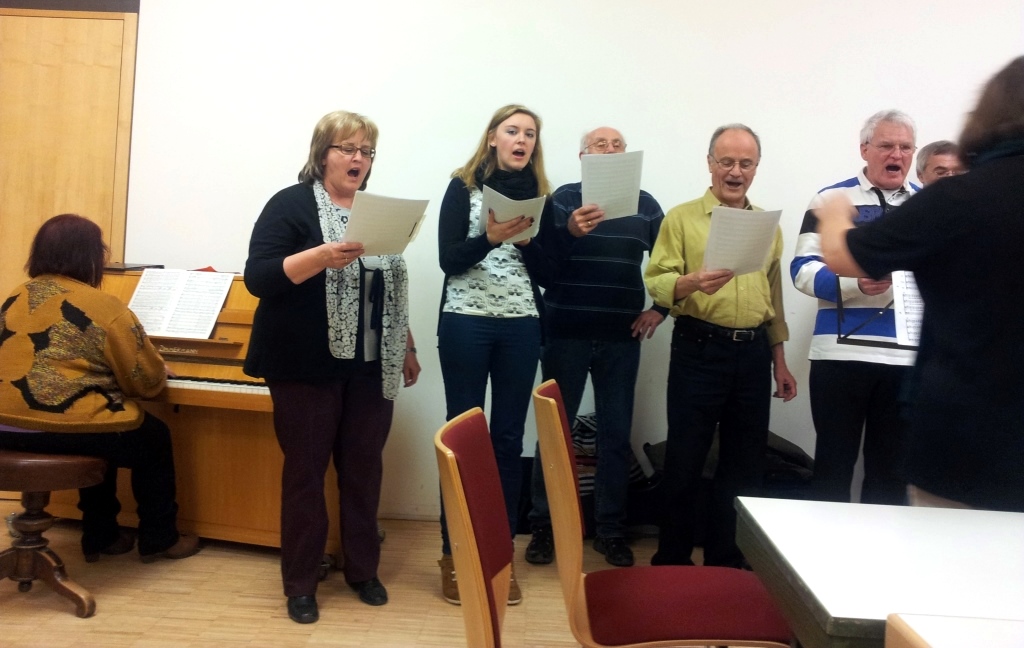 Sängerschar, begleitet von Claudia am Klavier, noch einmal zu Gehör, was