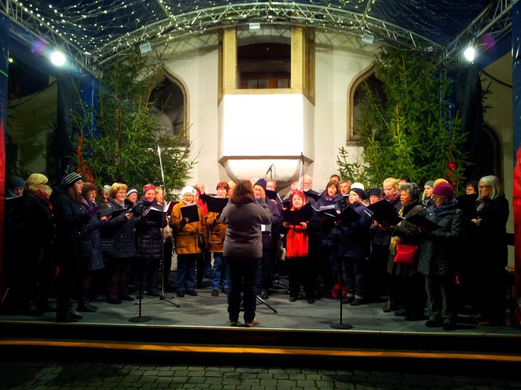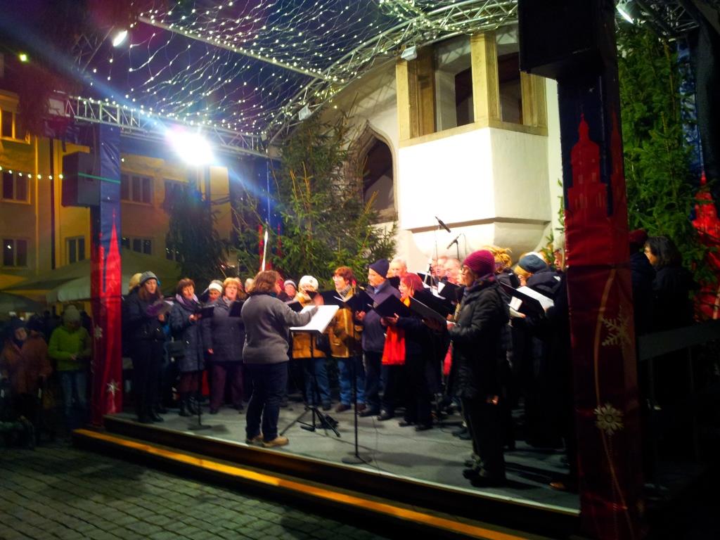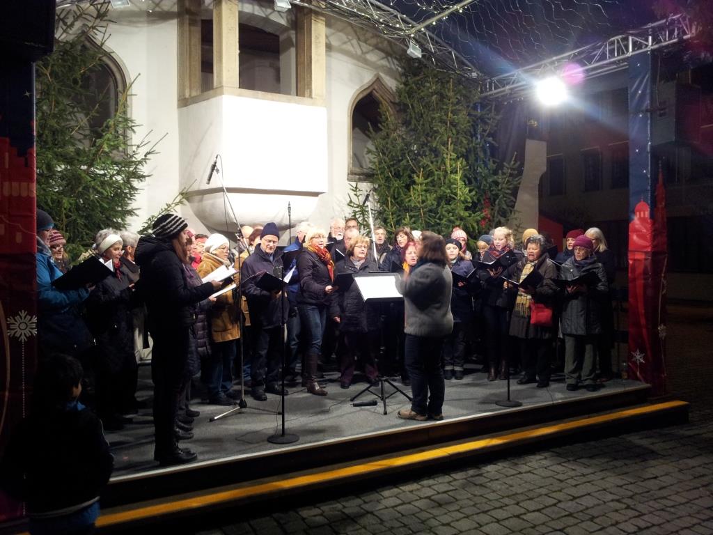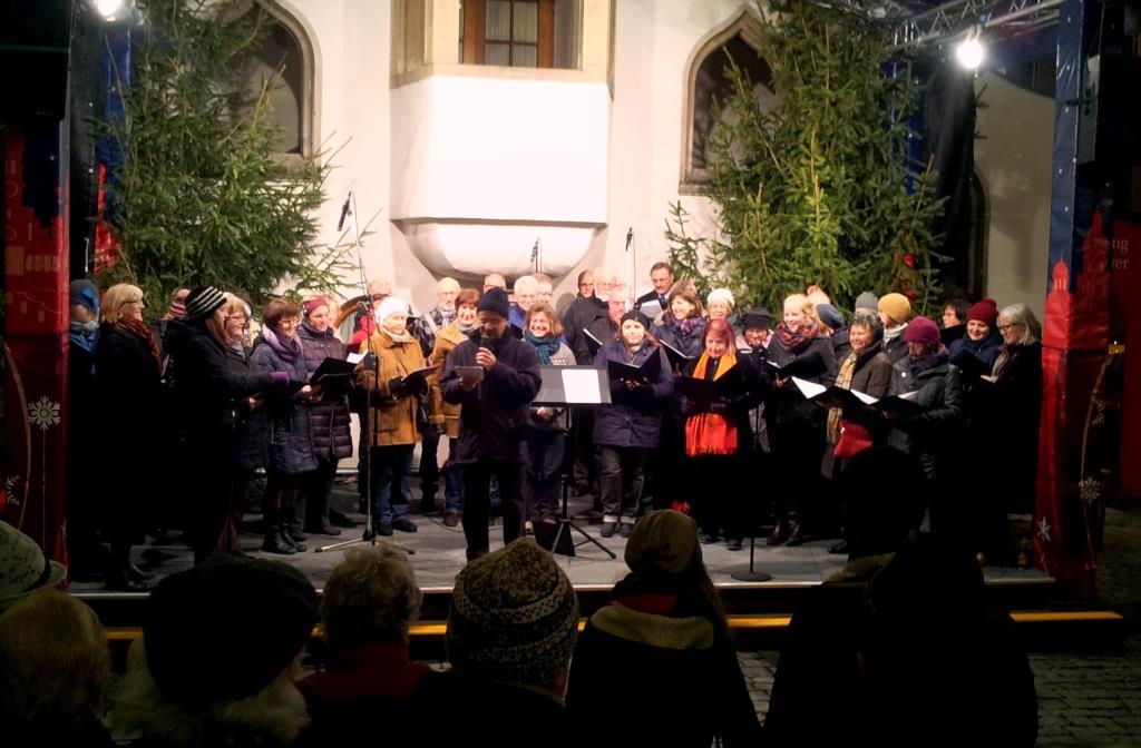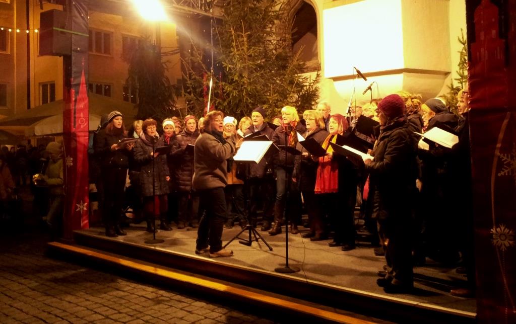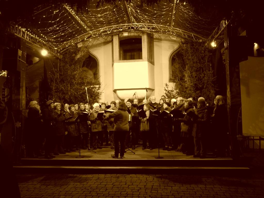 Chorgemeinschaft sich auf dem Kemptener Weihnachtsmarkt eingefunden, um die
